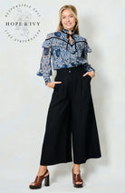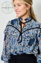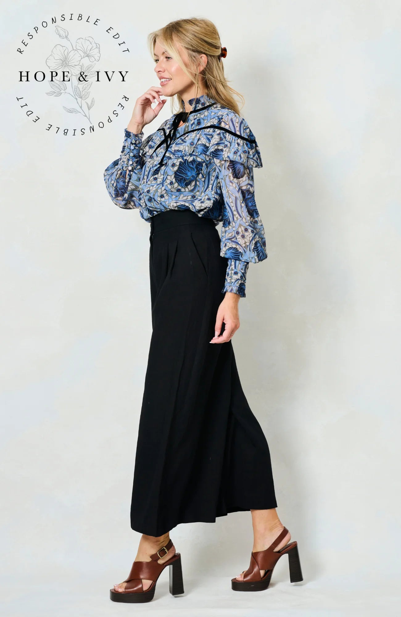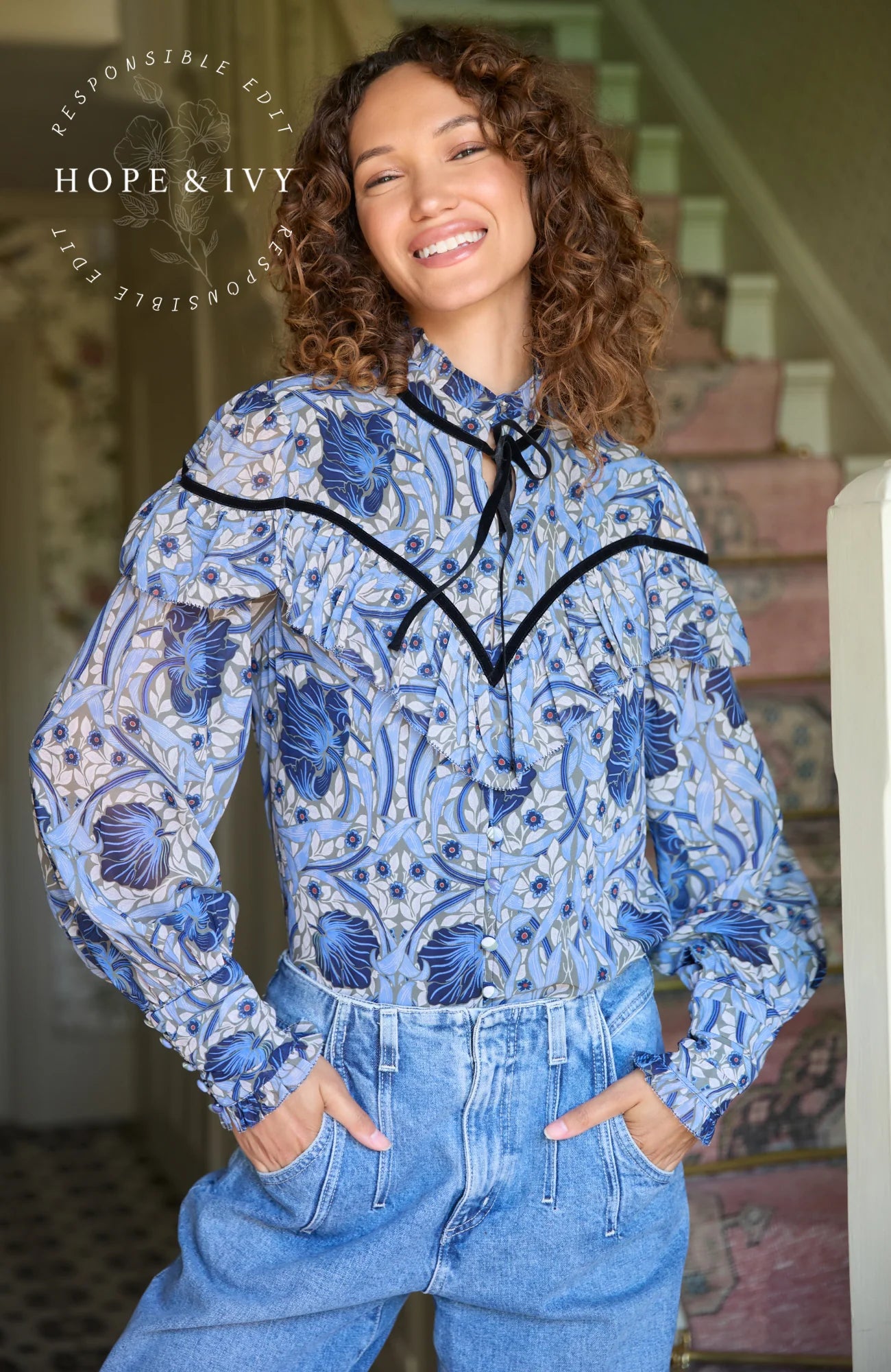 Hope & Ivy Mylene Long Sleeve Frill Shirt with Velvet Detailing