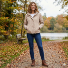 A lovely waist-length jacket with a softly matte finish and a calm, neutral tone that works with everything. The funnel neck sits high and clean, giving the jacket its polished look, while the detachable hood tucks away without fuss. Press studs and a concealed zip keep the front smooth, and the overall shape feels tidy rather than bulky. An easy, pulled-together jacket for everyday wear when you want to look chic, not sporty.
