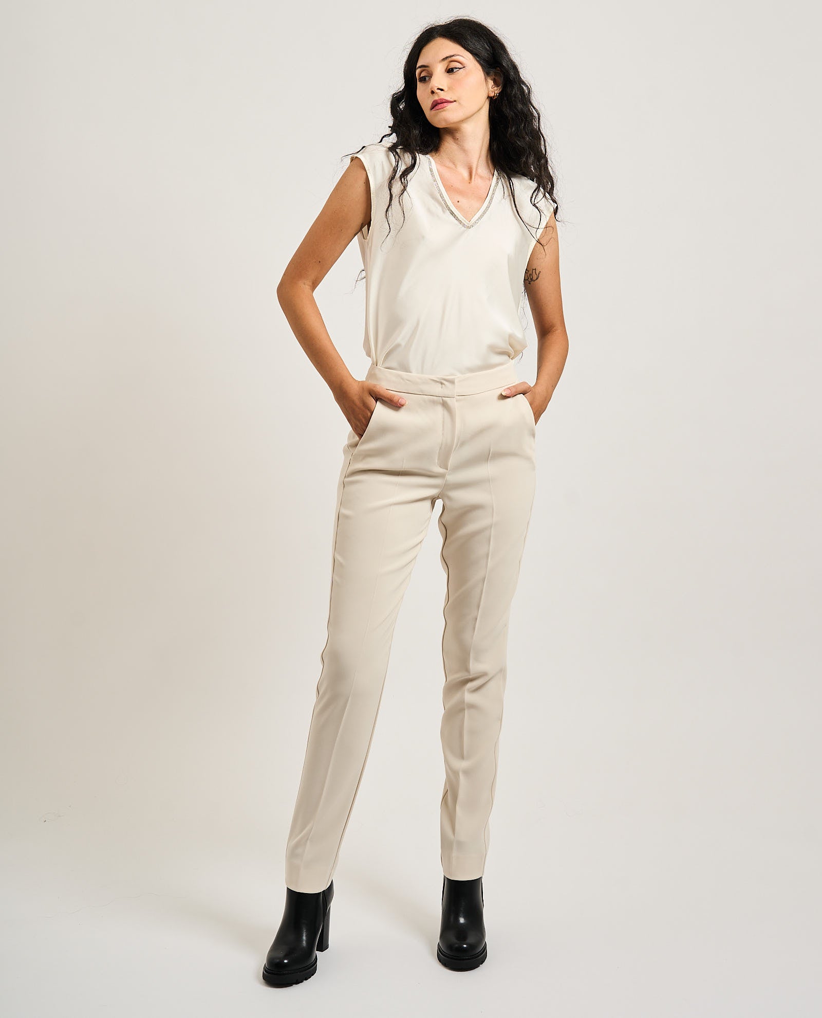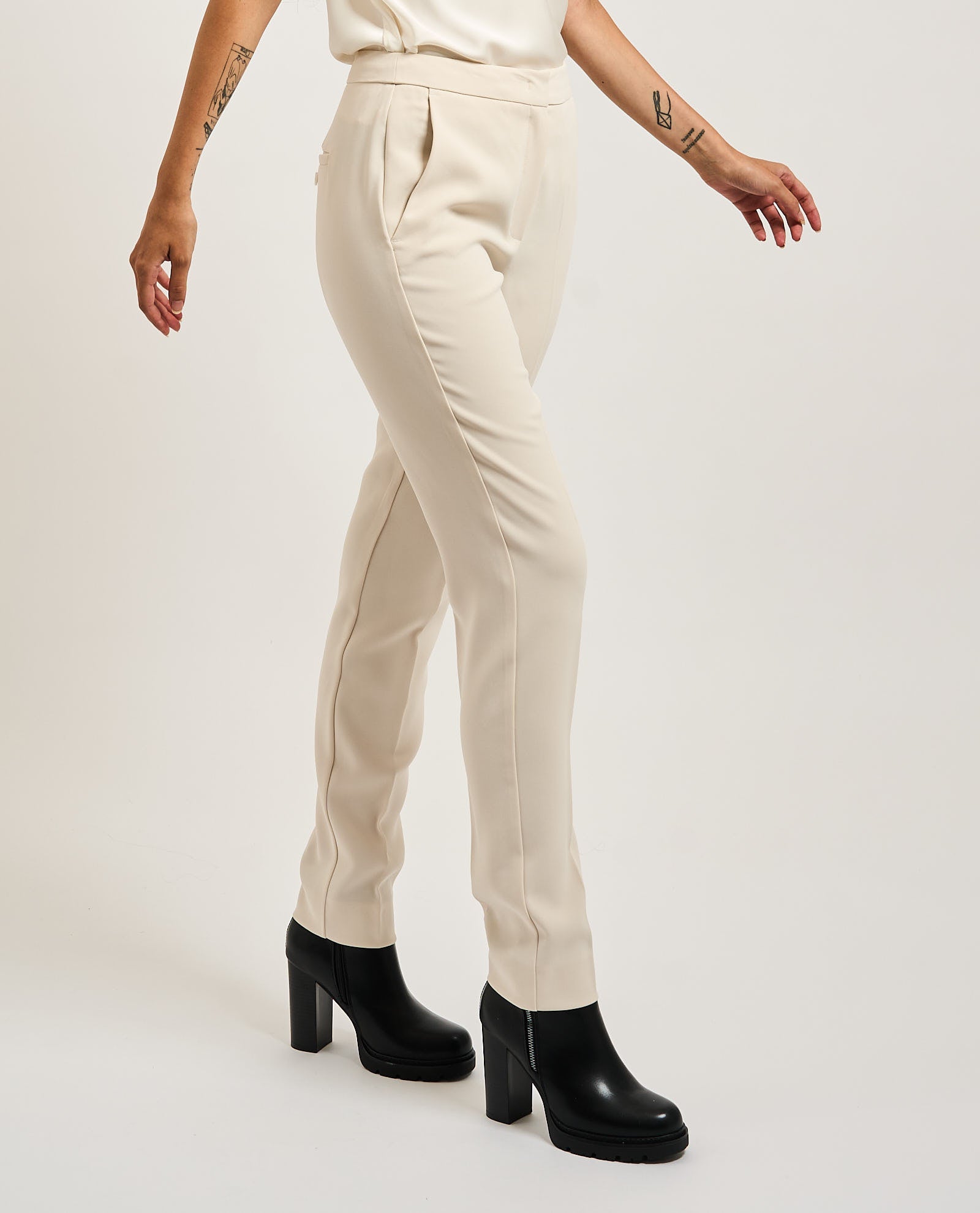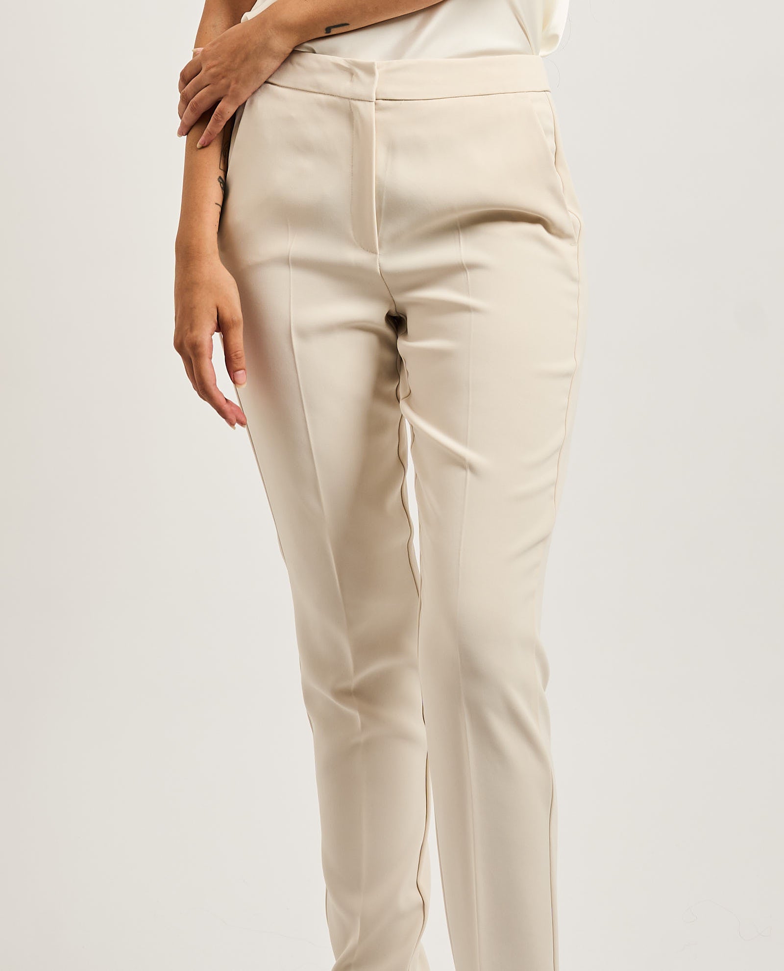 Model in iBlues Absence padded women’s jacket styled with wide-leg trousers