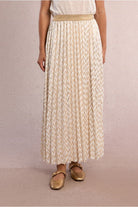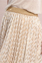 Molly Bracken Gold/White Chevron Print Pleated Midi Skirt