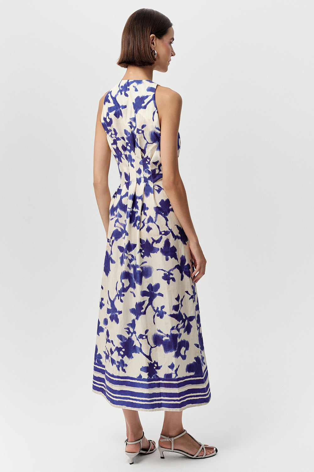 Exquise Zeta Blue/White Sleeveless Floral Midi Dress