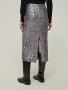This midi skirt from Penny Black features a feminine pencil cut and all over sparkling sequins. The perfect piece for any evening and party wardrobe.