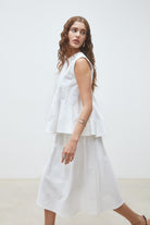 Suncoo Faye A-line White Midi Skirt
